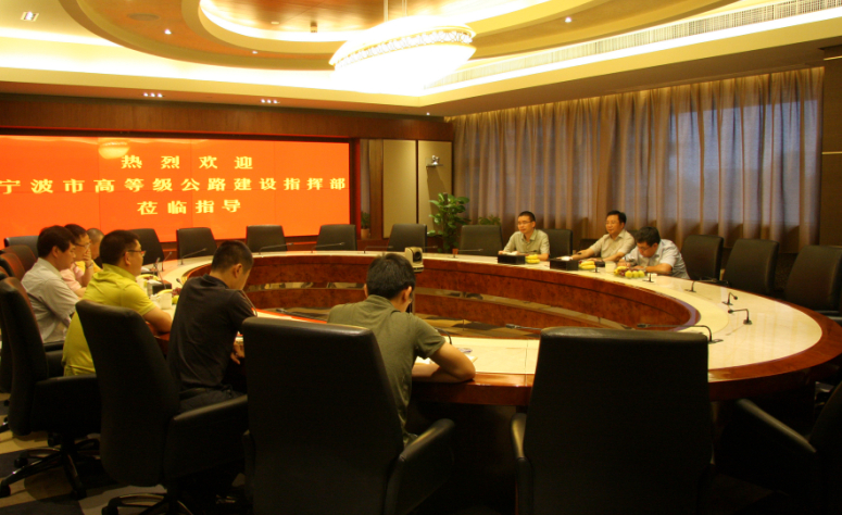 圖為寧波市高等級(jí)公路建設(shè)指揮部領(lǐng)導(dǎo)與物產(chǎn)金屬領(lǐng)導(dǎo)交流洽談