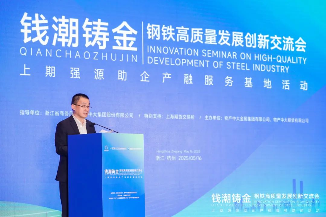 2025年5月16日,由浙江省商務(wù)廳、物產(chǎn)中大集團(tuán)指導(dǎo),上海期貨交易所特別支持,物產(chǎn)中大金屬與物產(chǎn)中大期貨主辦的“錢潮鑄金——上期強(qiáng)源助企產(chǎn)融服務(wù)基地活動(dòng)之鋼鐵高質(zhì)量發(fā)展創(chuàng)新交流會(huì)”在杭州成功舉行。會(huì)議匯聚上海期貨交易所、浙江省商務(wù)廳、五十余家產(chǎn)業(yè)鏈龍頭企業(yè)以及研究機(jī)構(gòu)代表,圍繞鋼鐵行業(yè)產(chǎn)融結(jié)合創(chuàng)新路徑展開(kāi)深度研討。